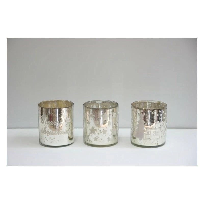 Komplet 3 świątecznych lampionów. Każdy w innym wzorze. Wymiar: 8,5x10cm Materiał: szkło