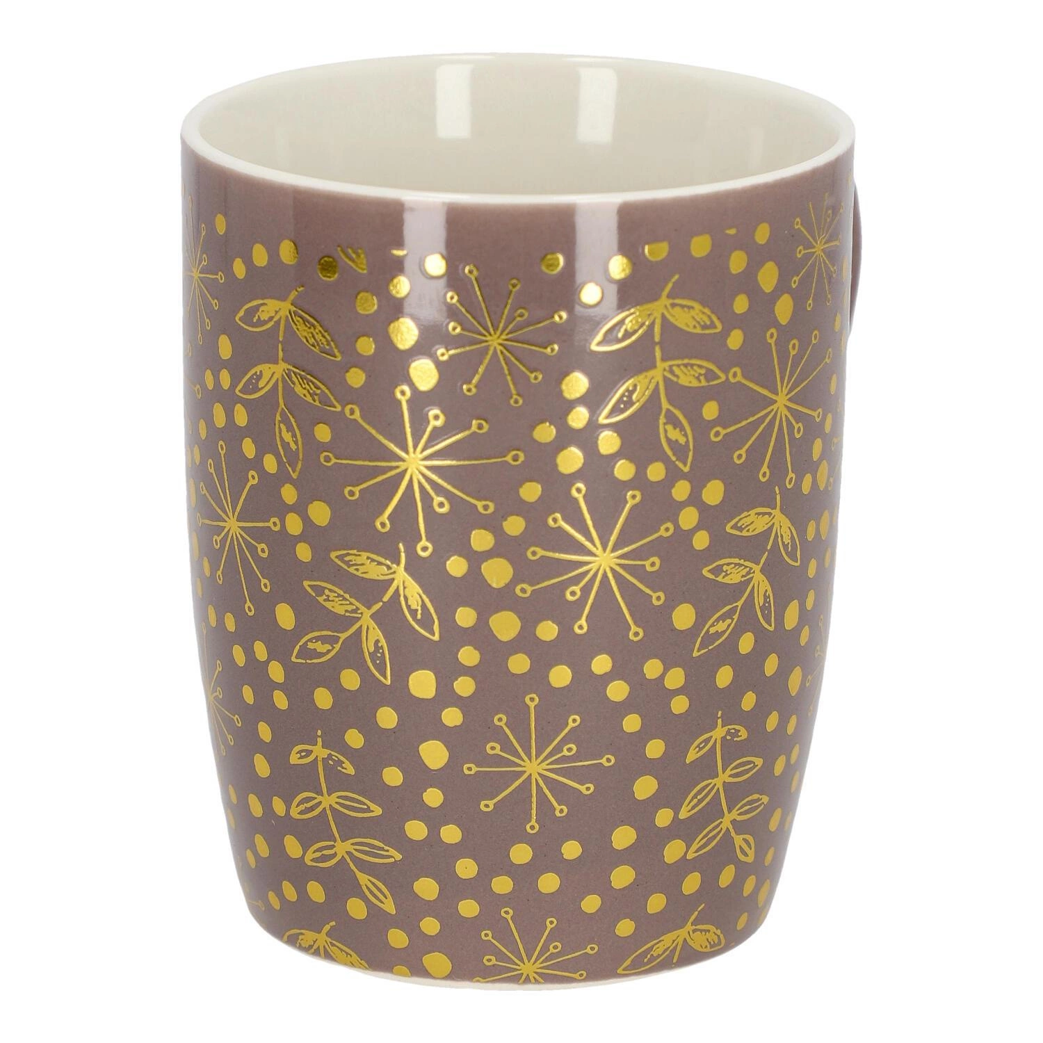 ŚWIĄTECZNY KUBEK SORBIER o pojemności 340 ml pozwoli Ci zanurzyć się w klimacie zbliżających się świąt i czerpać radość z każdej chwili podczas aromatycznej zimowej herbatki z bliskimi. Porcelanowy kubek posiada wygodne solidne uszko i przyjemny kształt, który pokryty został motywem ze złotych gałązek. Dostępny w kilku wersjach kolorystycznych i rozmiarach pozwoli Ci wybrać idealny kubek dla siebie i swoich bliskich. Wybór całej kolekcji będzie też świetnym rozwiązaniem na prezent świąteczny dla bliskiej osoby. Wzór kubka nie jest też zbyt zobowiązujący, dzięki czemu będziesz mógł korzystać z niego przez cały rok. Aby zachować kubek w idealnym stanie nie można myć go w zmywarce oraz używać w kuchence mikrofalowej.