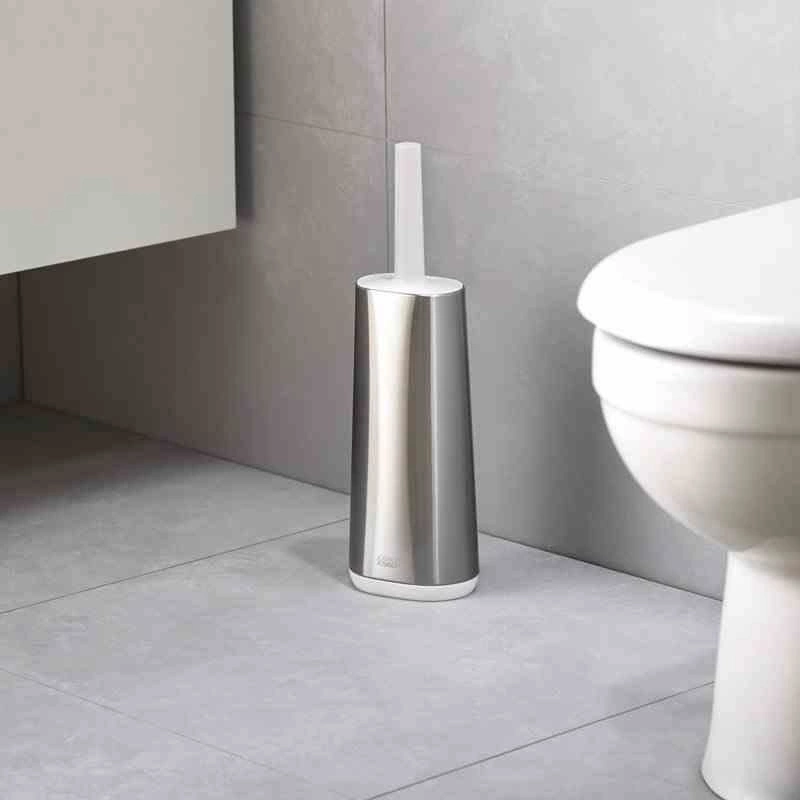 Joseph Joseph Flex JJ to nie tylko szczotka toaletowa, ale przemyślany element wyposażenia, stworzony z myślą o wygodzie użytkowania. Ergonomiczny uchwyt zapewnia pewny chwyt i komfort podczas sprzątania, a stabilna, zamknięta podstawa dba o higieniczne przechowywanie szczotki. Dzięki silikonowej powierzchni zabrudzenia nie przywierają, a czyszczenie szczotki jest szybkie i higieniczne. Minimalistyczny design sprawia, że produkt harmonijnie komponuje się z innymi akcesoriami łazienkowymi.