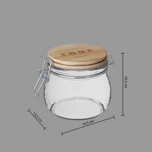Szklany słoik z pokrywką o pojemności 0,5 litra to elegancki i praktyczny dodatek do każdej kuchni. Wykonany z wysokiej jakości szkła, słoik charakteryzuje się trwałością i estetycznym wyglądem. Jego cylindryczny kształt (średnica 13,5 cm, wysokość 10,5 cm) sprawia, że jest idealny do przechowywania różnych produktów spożywczych, takich jak przyprawy, suszone zioła, orzechy, czy mniejsze ilości makaronu.