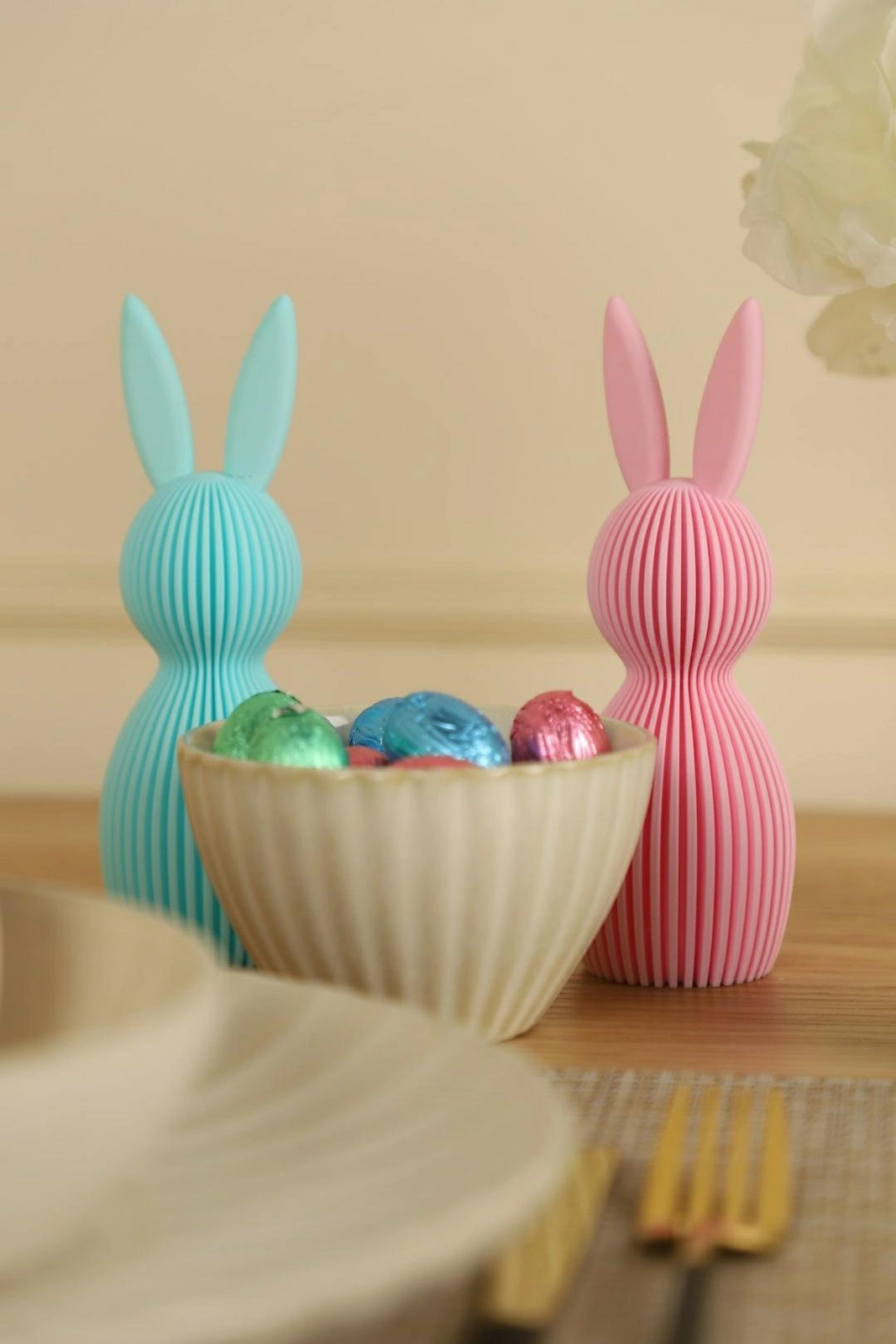 Minimalistyczna forma i połyskujące wykończenie sprawiają, że figurka wielkanocna Królik przyciąga uwagę i doskonale współgra z innymi dekoracjami. Jasnoróżowy odcień harmonijnie wpisuje się w aktualne trendy, podkreślając nowoczesny charakter wnętrz urządzonych ze smakiem. To propozycja, która świetnie sprawdzi się nie tylko w salonie, ale też w jadalni, biurze, kawiarni czy pokoju dziecięcym – wszędzie tam, gdzie liczy się styl i wyjątkowa atmosfera.