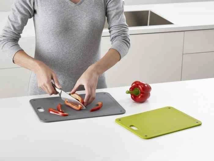 Zestaw 2 plastikowych desek do krojenia DoorStore Chop marki Joseph Joseph to praktyczne i nowoczesne rozwiązanie do każdej kuchni. Zestaw zawiera dwie deski w odcieniach szarości o szerokości 24 cm i 20 cm, wykonane z trwałego tworzywa sztucznego. Dzięki przemyślanemu wzornictwu i kompaktowym wymiarom, deski świetnie sprawdzą się zarówno do codziennego krojenia warzyw, pieczywa, jak i przygotowywania mięs.