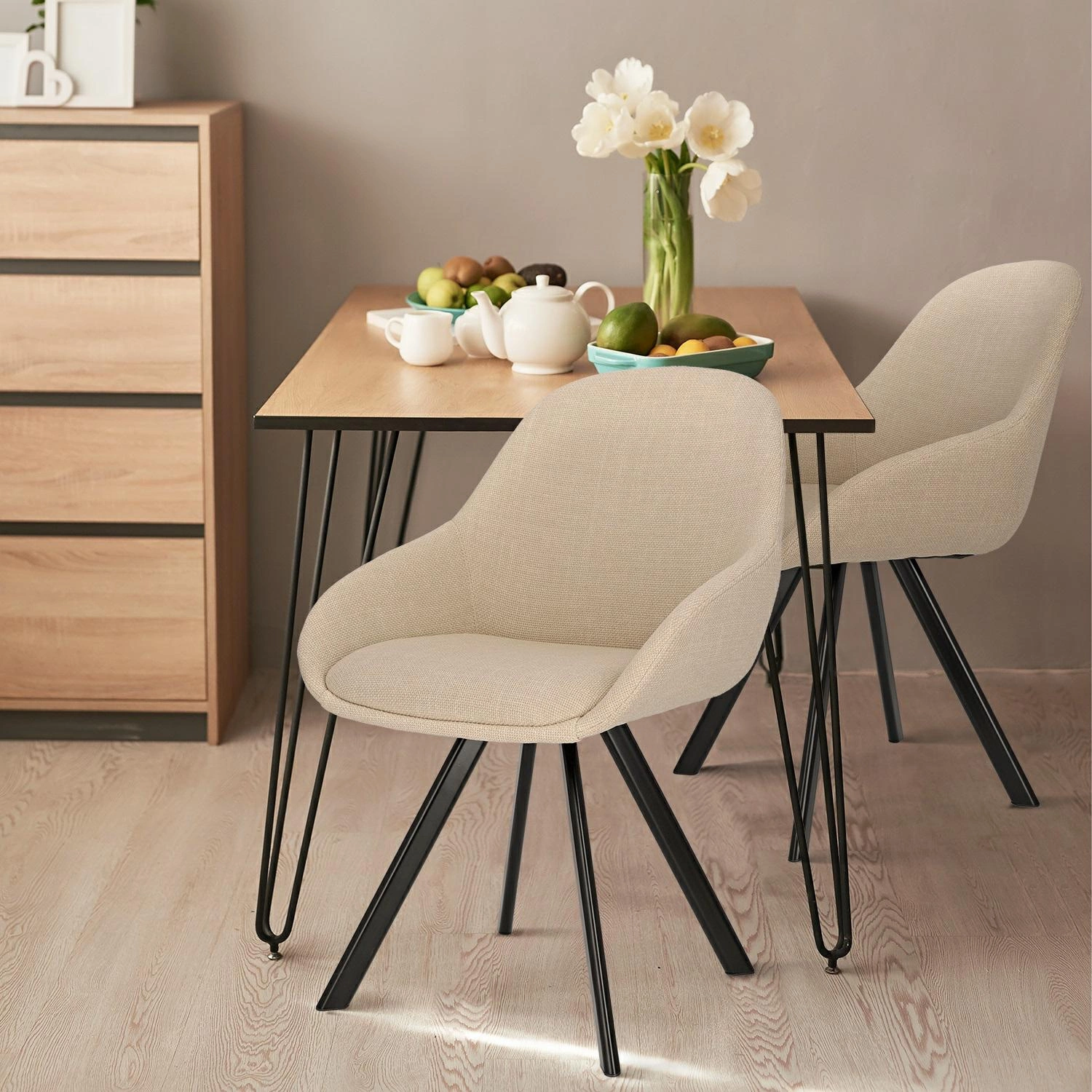 Zestaw 2 krzeseł Nels beżowe czarne nogi – nowoczesność i komfort w Twoim domu