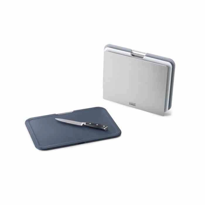 Zestaw Joseph Joseph Nest to komplet trzech plastikowych desek do krojenia w odcieniach szarości, zaprojektowany z myślą o wygodnym użytkowaniu w każdej kuchni. Praktyczne wymiary każdej deski (25,9 cm długości) pozwalają na swobodne krojenie warzyw, owoców, mięsa czy pieczywa. Wyróżniają się nowoczesnym designem oraz przemyślanym kształtem, który ułatwia przechowywanie i utrzymanie porządku na blacie.
