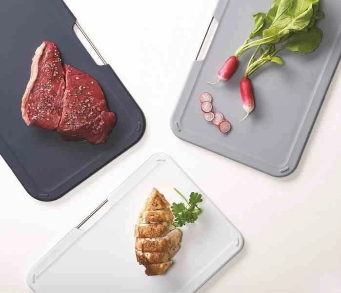 Zestaw 3 szarych desek do krojenia z tworzywa Joseph Joseph Nest to praktyczne i stylowe rozwiązanie dla każdej nowoczesnej kuchni. Wykonane z trwałego tworzywa sztucznego, każda deska posiada wysokość 22 cm i została zaprojektowana z myślą o wygodzie codziennego użytkowania. Kompaktowy zestaw w szarych odcieniach pozwala na bezpieczne i higieniczne przygotowywanie różnych składników – od warzyw po mięso, minimalizując ryzyko przenikania smaków i zapachów.