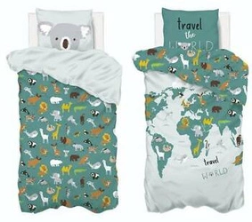 Najlepsza cenaKomplet pościeli dziecięcej Atmosphera bawełniana 140x200 mapa świata zielona z certyfikatem Oeko-Tex