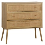 Komoda Ballo 3 szuflady boho z rattanu i drewna, komoda do salonu i sypialni na nóżkach
