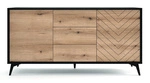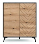 Wszystkie meble skandynawskie z kolekcji Fargo posiadają fronty w jodełkę. Dzięki temu wyglądają bardzo spójnie na tle całej aranżacji. Same tworzą swoistą dekorację, więc będą świetnym rozwiązaniem w miejscach, gdzie istnieje potrzeba, by zapełnić pustkę, a jednocześnie uniknąć przesadzonych ozdób. Świetnie wygląda także przemyślana kolorystyka kolekcji, która dodaje charakteru meblom skandynawskim. Połączenie czerni z naturalnym odcieniem drewna, świetnie sprawdzi się zarówno w jasnych, jak i tych ciemniejszych aranżacjach. Dzięki kolorystyce kolekcja jest także niezobowiązująca stylowo. Sprawdzi się jako nowoczesne meble do salonu, industrialne wyposażenie pokoju nastolatka, a nawet klasyczny wystrój sypialni.