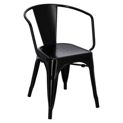 Krzesło metalowe Paris Arms czarne do jadalni i kuchni inspirowane Tolix industrialne z podłokietnikami