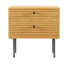 Szafka nocna Lattes 50x40 cm z 2 szufladami w stylu skandynawskim, naturalny dąb i czarny metal