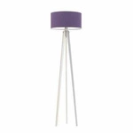 Lampa stojąca do salonu Miami trójnóg drewniana fioletowy abażur biała podstawa glamour