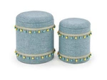 Zestaw 2 niebieskich puf Eblis ze schowkiem okrągłe tapicerowane do salonu i pokoju dziecięcego