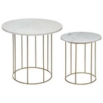 Najlepsza cenaOstatnie sztukiZestaw 2 okrągłych stolików kawowych Garance biały marmur i złoty glamour do salonu Atmosphera