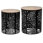 Najlepsza cenaZestaw 2 okrągłych stolików kawowych Akira do salonu boho nowoczesny drewno i metal czarny