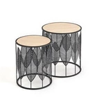 Zestaw 2 okrągłych stolików kawowych Mirra loftowy drewniany do salonu naturalny/czarny