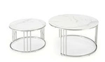 Najlepsza cenaZestaw 2 okrągłych stolików kawowych Yasmine szklanych glamour srebrno-białych do salonu
