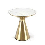 Najlepsza cenaStolik kawowy okrągły szklany Alisma 50 cm biały marmur glamour złoty do salonu Actona