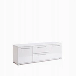 Najlepsza cenaSzafka RTV biała połysk Flory 150 cm nowoczesna z szufladami do salonu Intesi