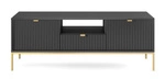 Najlepsza cenaSzafka RTV Delicious czarna ryflowana z szufladą na wysokich złotych nogach 154 cm do salonu