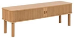 Szafka RTV drewniana Langley 140 cm nowoczesna z lamelami na wysokich nogach do salonu