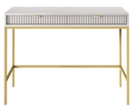 Najlepsza cenaNowoczesna toaletka Delicious szara z ryflowanymi szufladami na złotych nogach do sypialni