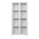 Witryna szklana biała Brisbane Intesi wąska nowoczesna na książki do salonu na metalowych nogach