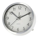 Najlepsza cenaOstatnie sztukiBudzik Quazi srebrny nowoczesny zegar stojący do sypialni i biura średnica 9 cm Intesi