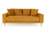 Ostatnie sztukiSofa trzyosobowa Lido Intesi żółta aksamitna na drewnianych nogach do salonu w stylu skandynawskim