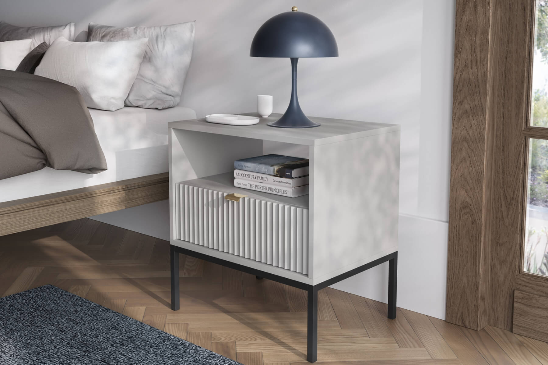 Szafka nocna z ryflowanym frontem do sypialni, a może pomysł na nowoczesne meble do przedpokoju?