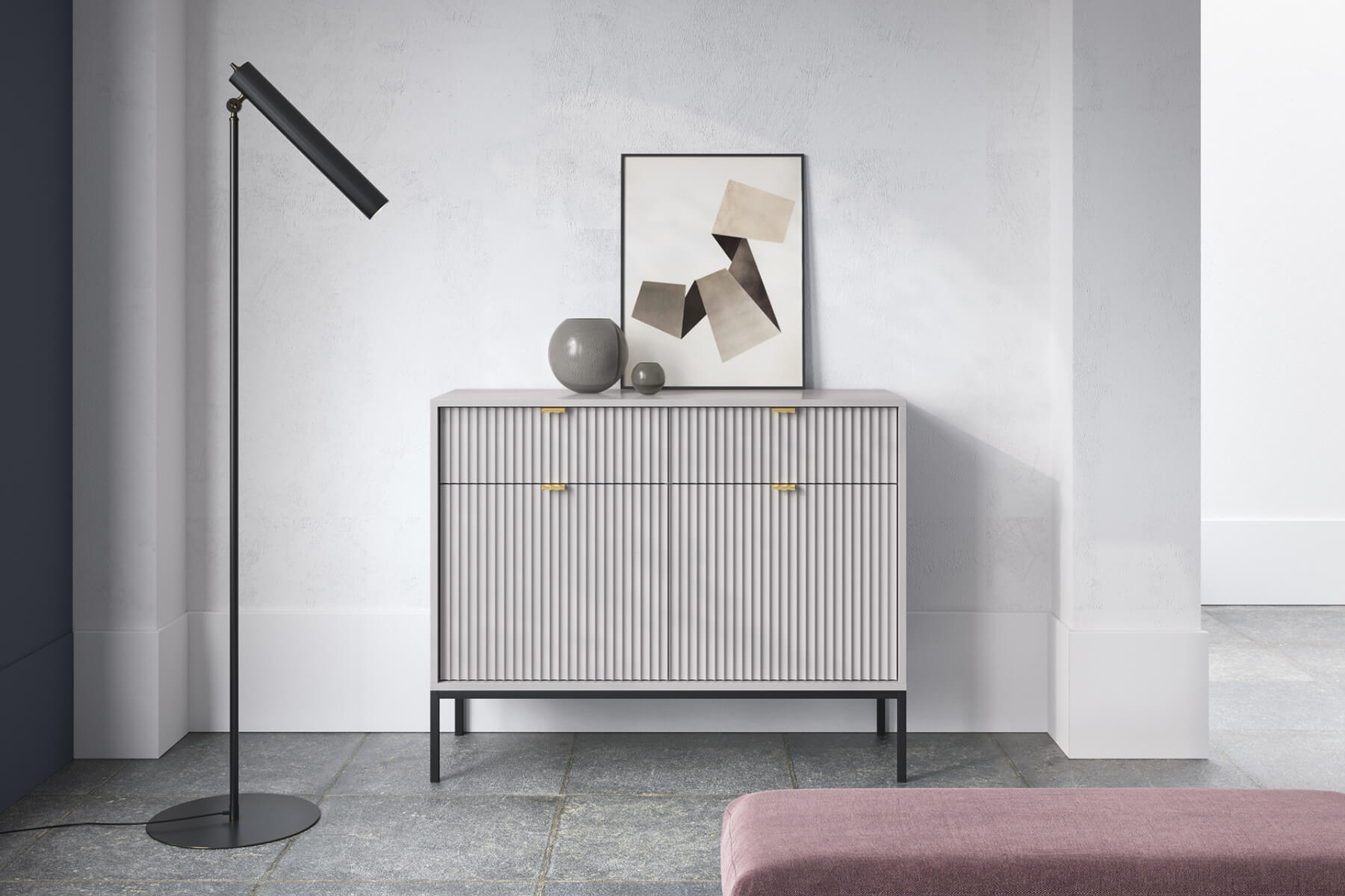 Najlepsza cenaKomoda Delicious ryflowana szara z szufladami nowoczesna 104 cm do salonu Intesi