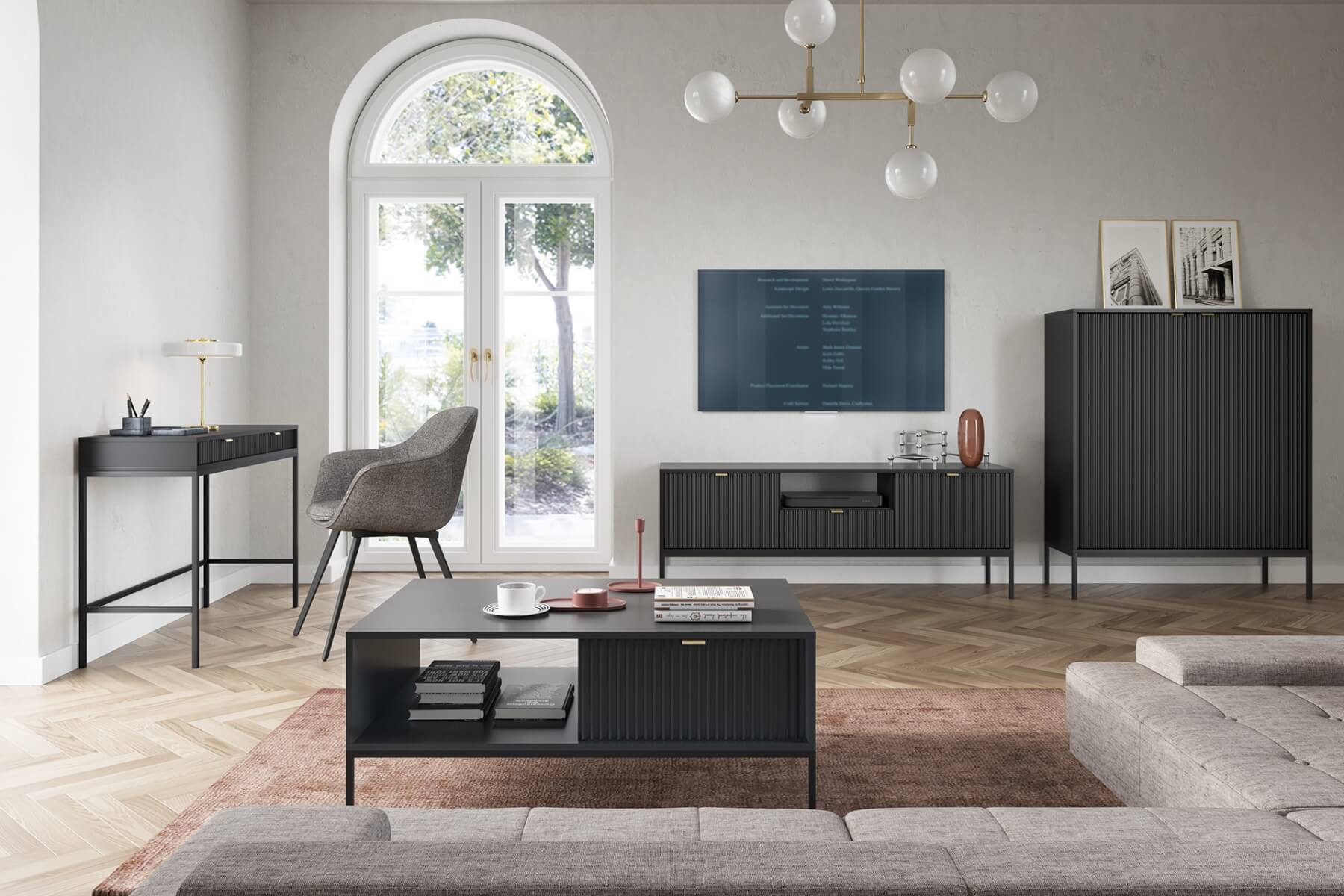 Najlepsza cenaKomoda Delicious wysoka czarna ryflowana na nóżkach 104 cm nowoczesna do salonu Intesi