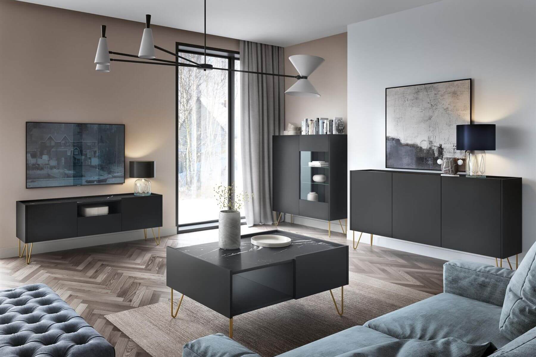 Czarne meble nowoczesne Marbren do salonu i nie tylko